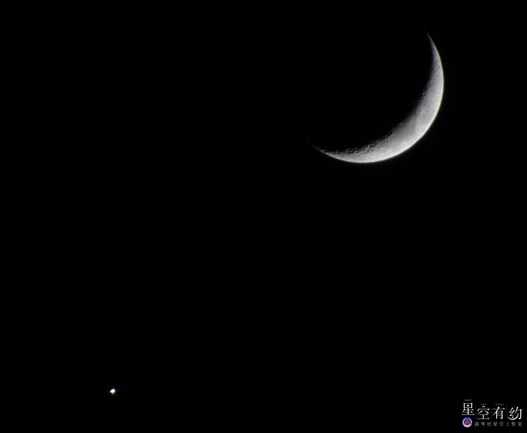 這是2017年1月2日遼寧大連上空的“金星合月”。當日是農歷臘月初五,傍晚時分金星與月亮近距離相會,上演“金星合月”天象。新華社發 劉德斌 攝