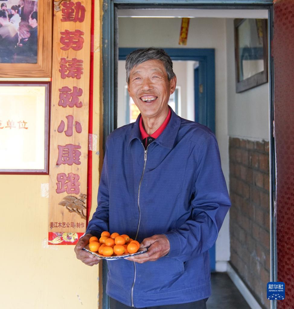 伊春森工上甘嶺林業局公司溪水林場分公司退休職工劉養順端著小西紅柿準備招待游客(5月19日攝)。新華社記者王松攝