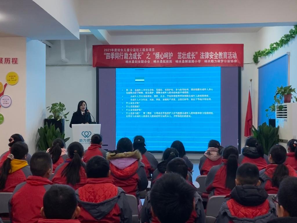 響水鎮解放路小學位于城鄉接合部,全校有1273名學生,其中637名是留守兒童?!奥犃朔ü俚闹v課,我認識到,碰到霸凌等侵害要大聲拒絕、及時報告?!苯夥怕沸W六年級學生趙雪蓮說。她是一名留守兒童,父母常年在外務工。2021年11月,響水縣人民法院法官來到學校,通過一個個案例,講解了未成年人常遭受的侵害類型,讓學生們增強自我保護意識。