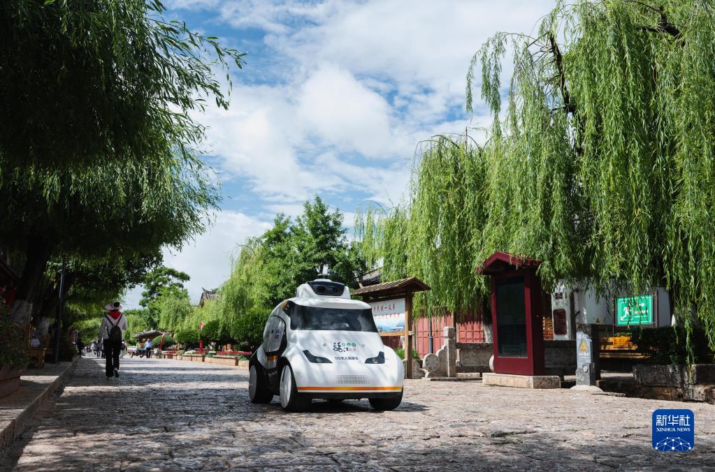 麗江古城5G無人巡邏車在進行巡邏作業(2022年6月9日攝)。新華社記者 王冠森 攝