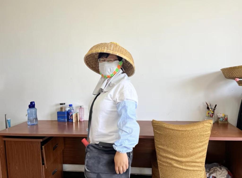 上午10點,熱浪洶涌,水稻田里已經燙得無法下腳?;氐绞覂?,周紅英滿身的泥土,身體冒著熱氣。盡管全副武裝,包裹嚴實,她的臉還是被曬得黑里透紅?!傲骱固?,防曬霜被洗掉了?!?/p>