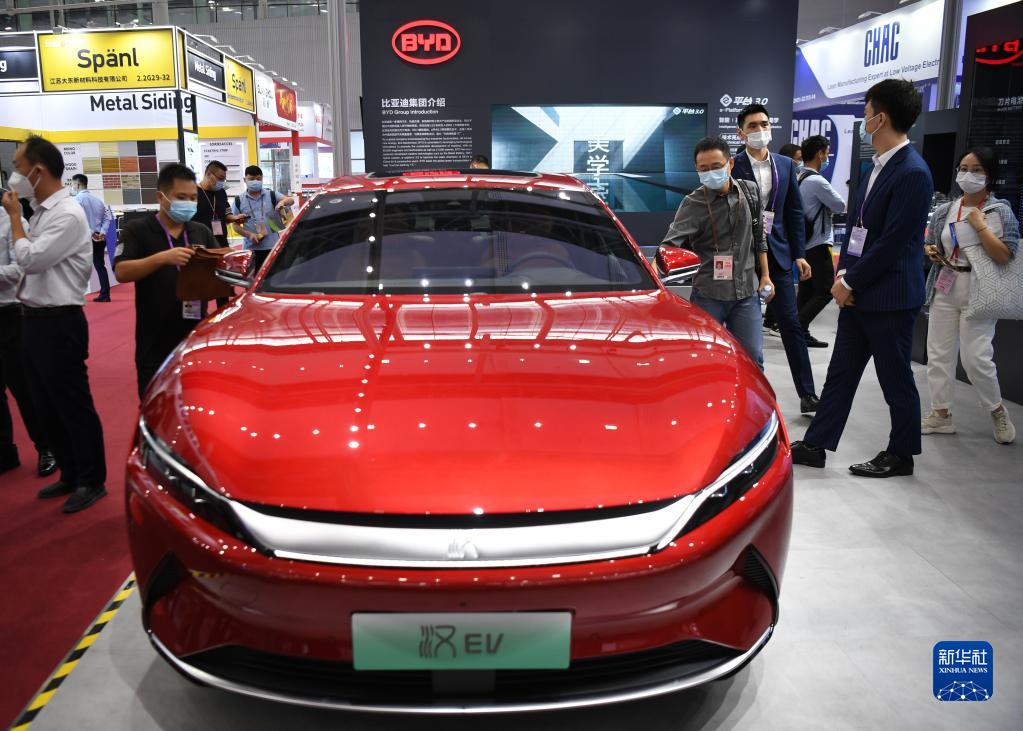 這是在第130屆廣交會上拍攝的比亞迪新能源汽車(2021年10月15日攝)。新華社記者 鄧華 攝
