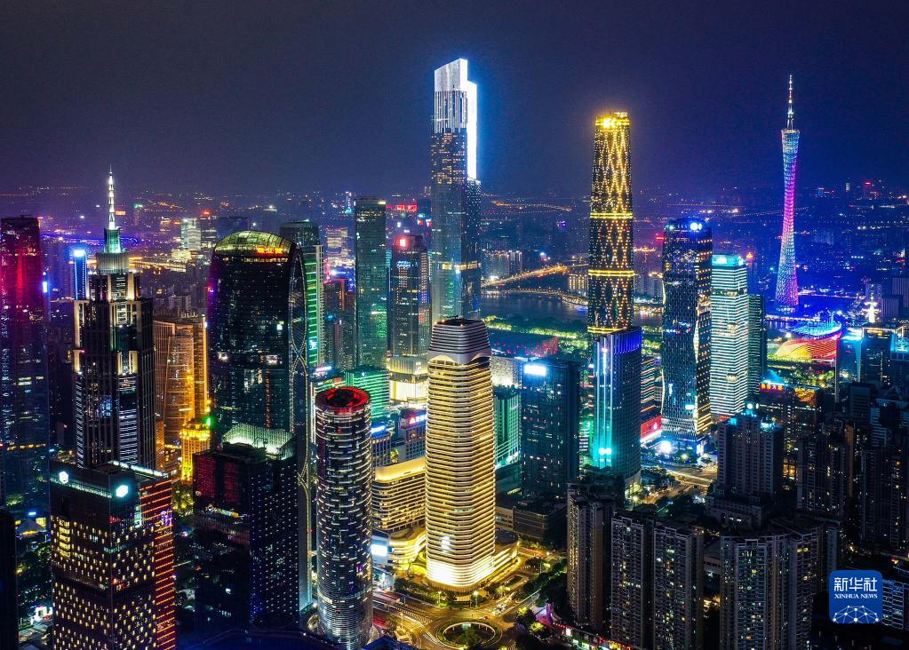 廣州市珠江新城夜景(2020年10月2日攝,無人機照片)。新華社記者 劉大偉 攝