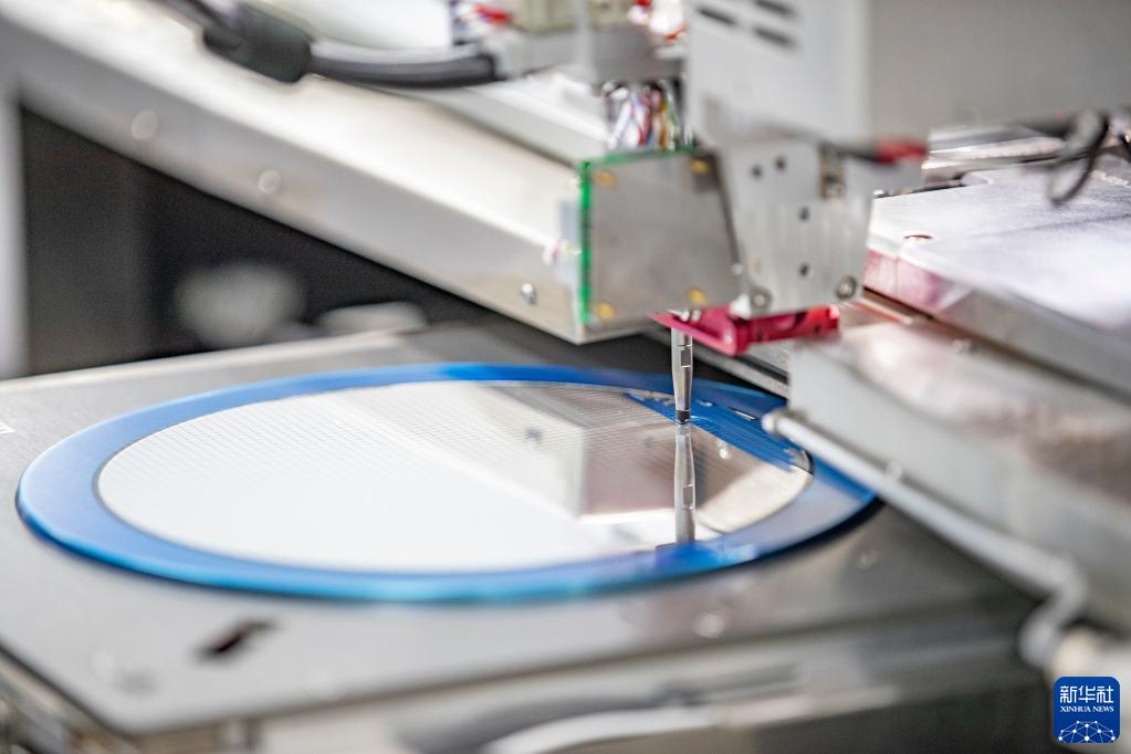 在重慶平創半導體研究院有限責任公司,工作人員利用設備對芯片進行貼片作業(2022年4月15日攝)。新華社記者 黃偉 攝