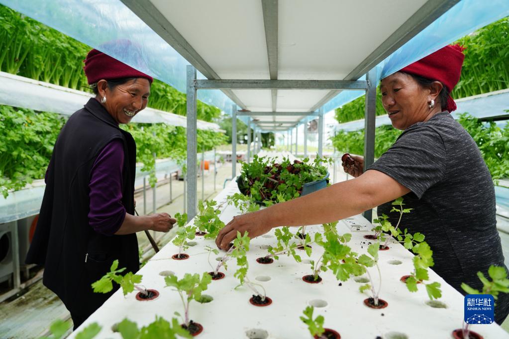 四川省昭覺縣四開鎮好谷村涪昭現代農業產業園內,農戶在進行芹菜苗移栽(2022年6月18日攝)。新華社記者 劉瓊 攝