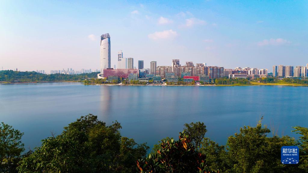 四川天府新區興隆湖以及湖畔的西部(成都)科學城(2021年10月29日攝)。新華社發(四川天府新區融媒體中心供圖)