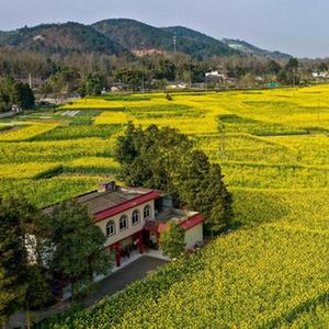 在四川成都崇州市拍攝的油菜花田(2020年2月25日攝,無人機照片)。新華社記者 王曦 攝