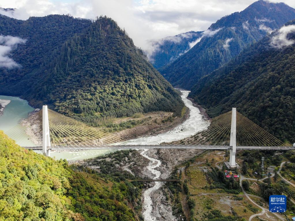 這是川藏公路通麥路段上的迫龍溝特大橋(無人機照片,2019年10月27日攝)。新華社記者 孫非 攝