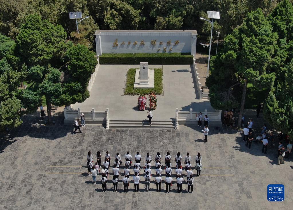 參觀者在位于河南省蘭考縣的焦裕祿紀念園瞻仰焦裕祿烈士墓(2021年6月24日攝,無人機照片)。新華社記者 李安 攝
