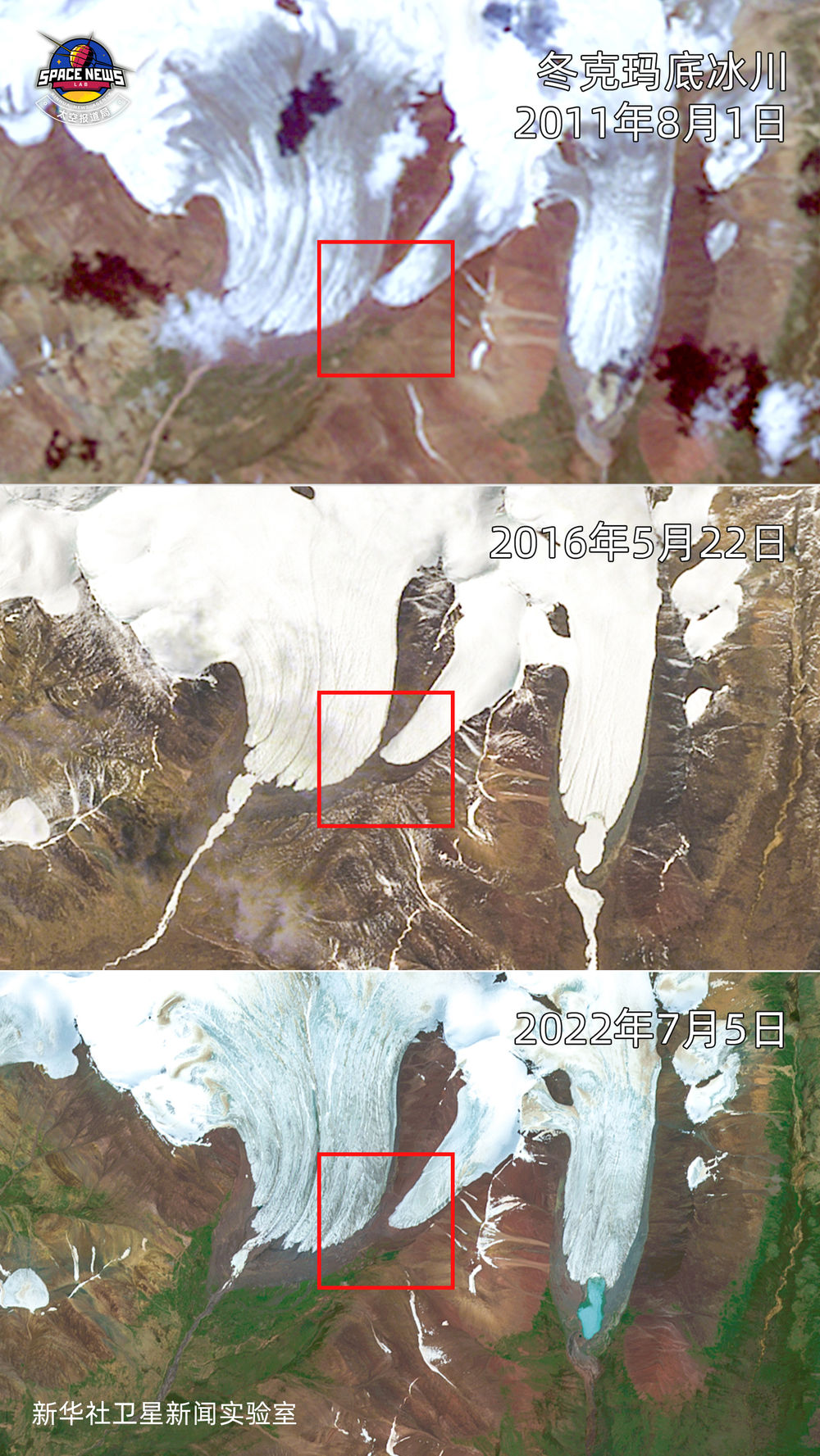 中國氣象局氣候變化中心發布的《中國氣候變化藍皮書(2021)》顯示,全球山地冰川整體處于消融退縮狀態,1985年以來山地冰川消融加速。其中長江源區大、小冬克瑪底冰川均呈加速消融趨勢,2020年這兩條冰川末端分別退縮了10.1米和15.7米。