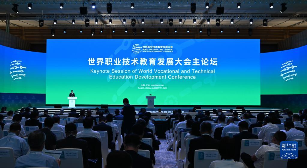這是在國家會展中心(天津)拍攝的世界職業技術教育發展大會主論壇現場(8月19日攝)。新華社記者 孫凡越 攝