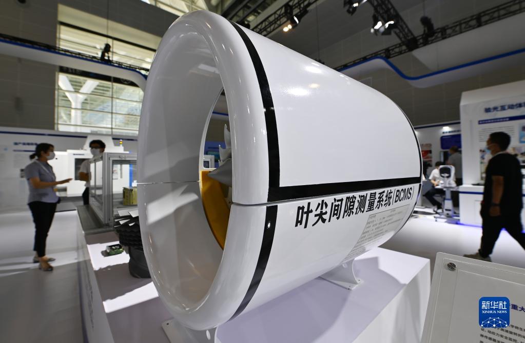 這是在世界職業技術教育發展大會的世界職業教育產教融合博覽會上拍攝的葉尖間隙測量系統(8月19日攝)。新華社記者 李然 攝