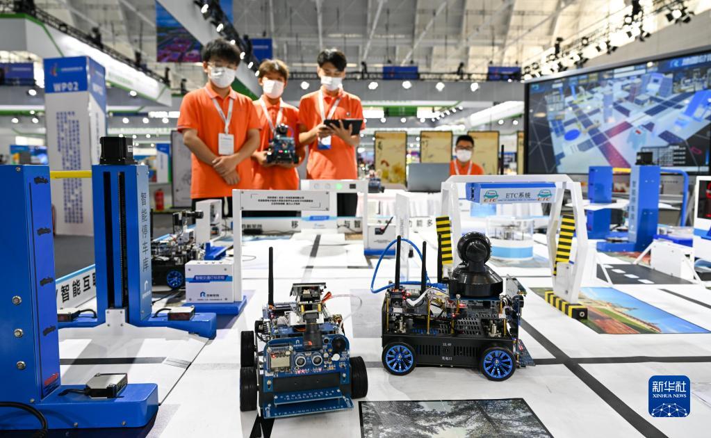 重重疊疊的迷宮里,機器人快速穿梭,短短幾秒就成功走出。這是大會中世界職業院校技能大賽展示賽的精彩一幕。
