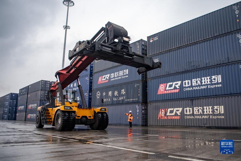走進重慶團結村中心站,滿眼都是印有“中歐班列”和“陸海新通道”圖標的集裝箱,橙黃色的吊車緊張忙碌,一列列貨運班列拉響汽笛,緩緩駛出站臺。