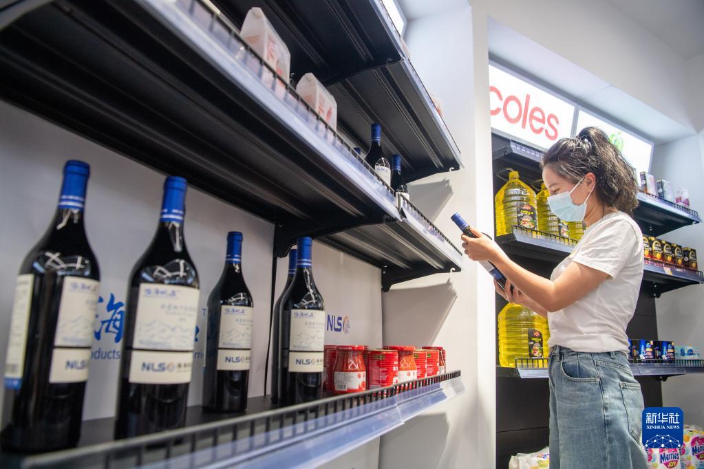 消費者在位于重慶解放碑的“陸海新通道國際消費中心”選購商品(2022年5月28日攝)。新華社記者 唐奕 攝