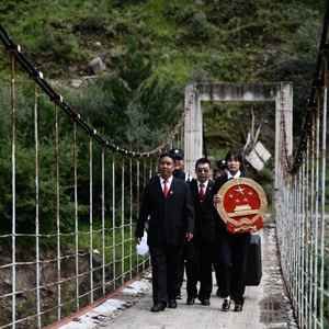 青海省果洛藏族自治州班瑪縣人民法院巡回法庭成員前往班瑪縣燈塔鄉班前村提供法律服務(2021年8月7日攝)。新華社記者 張龍 攝