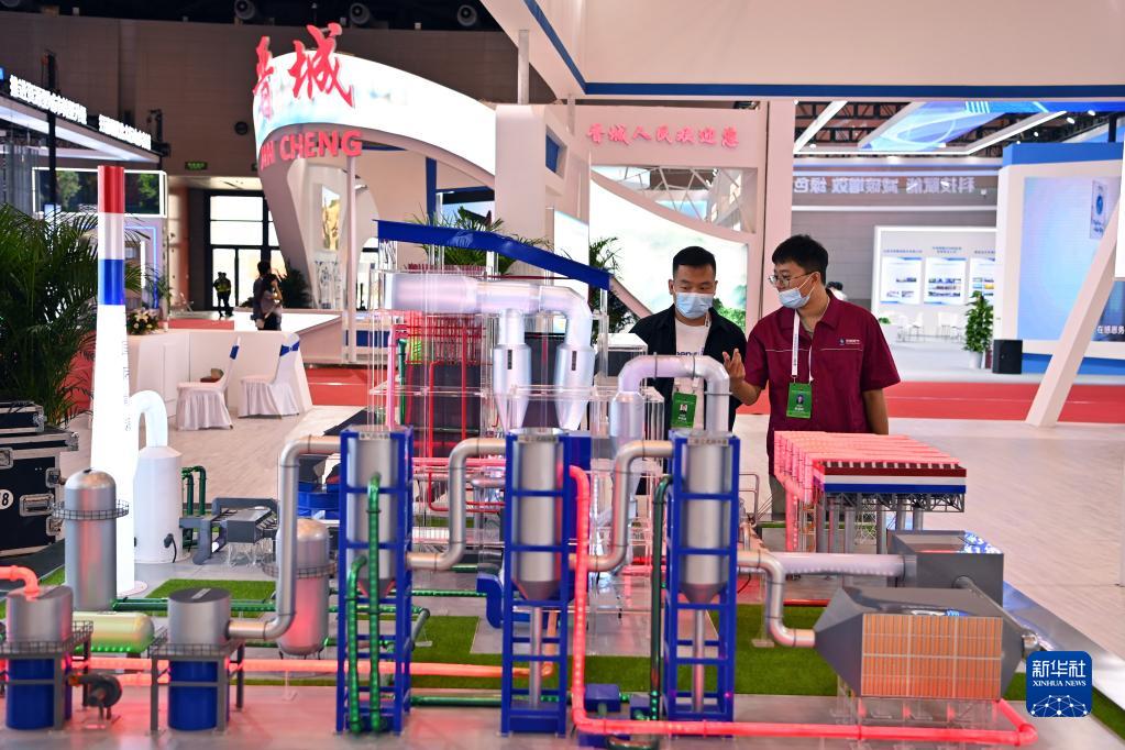 9月3日,在2022中國(太原)國際能源產業博覽會,參展商在格盟國際能源有限公司的展廳內交流。新華社記者 楊晨光 攝