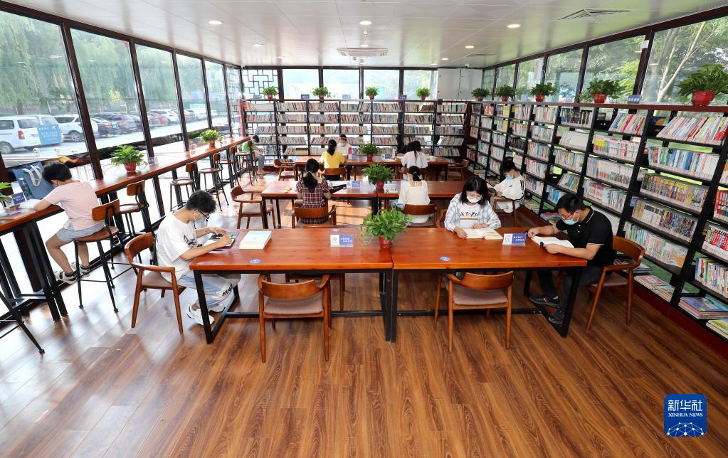 2021年8月21日,讀者在河北省石家莊市藁城區人民廣場“24小時智慧圖書館”內閱讀。新華社記者 駱學峰 攝