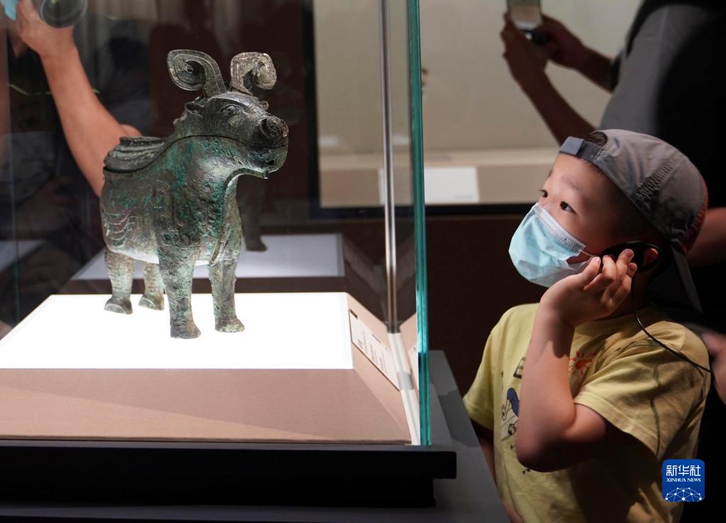 2022年7月30日,小觀眾在上海博物館舉行的“宅茲中國——河南夏商周三代文明展”上參觀。新華社記者 任瓏 攝