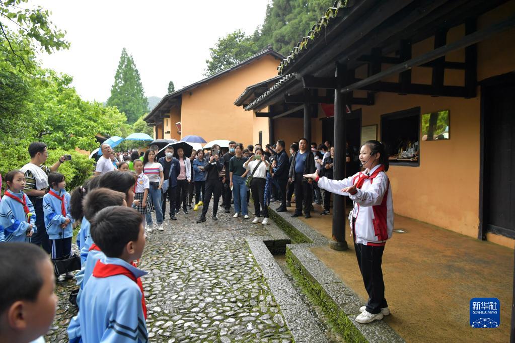 2021年5月11日,在江西省井岡山茨坪毛澤東同志舊居,“小紅軍宣講團”的團長余梓洋給前來參觀研學的學生們進行義務講解。新華社記者 彭昭之 攝