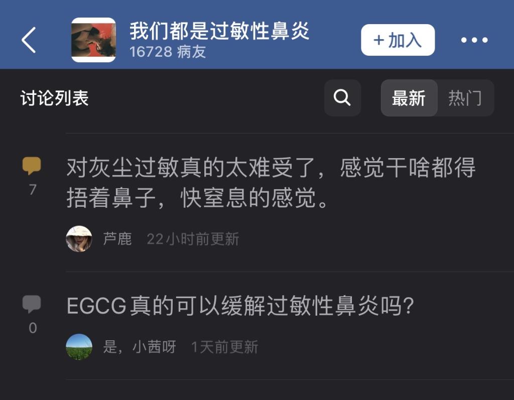 在“我們都是過敏性鼻炎”豆瓣小組中,近期發帖量和關注量逐步增加,目前已有1.6萬余位病友分享病情和防護方法。常有人在深夜或凌晨發帖:“又被憋醒了”。在美團買藥平臺上,8月以來,鼻炎線上問診量月環比增長31%,每天有超過5萬人購買過敏性鼻炎藥品。