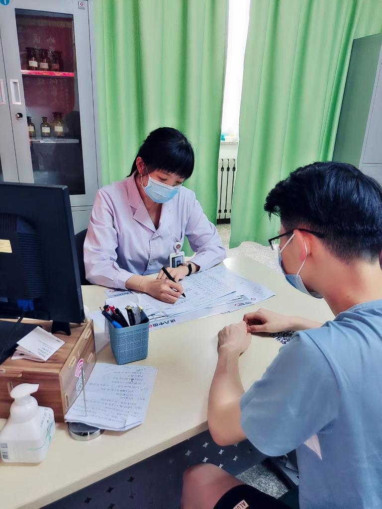 圖為中國人民解放軍北部戰區總醫院過敏反應科主任柴若楠正在為患者診斷。(受訪者供圖)