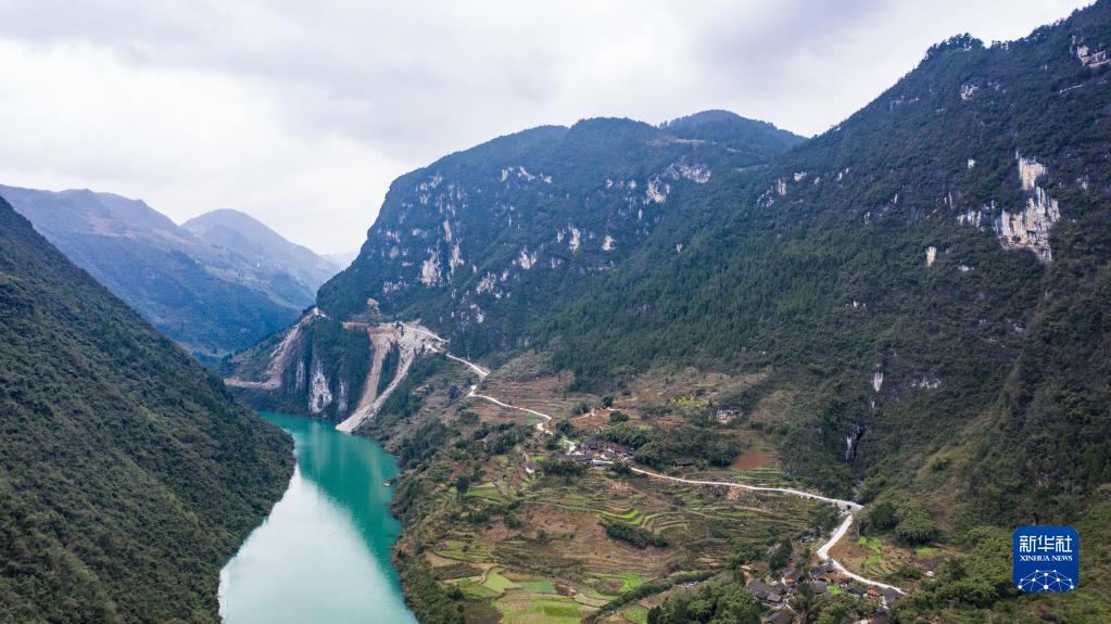 貴州省道真仡佬族苗族自治縣忠信鎮石筍村的絕壁通組公路(2020年1月15日攝,無人機照片)。新華社記者 陶亮 攝