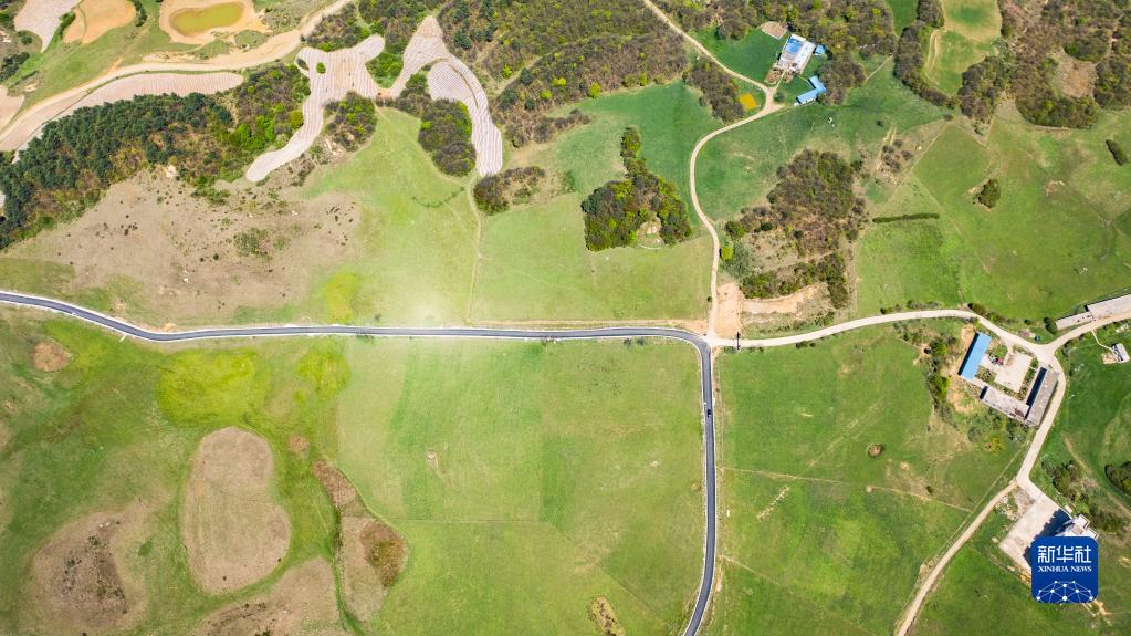 貴州省威寧彝族回族苗族自治縣朱家院子至轎頂山鄉鎮硬化路(2020年4月27日攝,無人機照片)。新華社記者 陶亮 攝