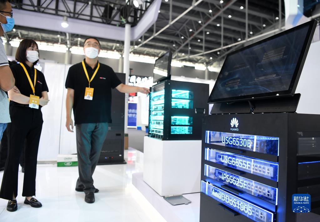 9月4日,一家參展企業代表在2022年國家網絡安全宣傳周網絡安全博覽會上介紹防火墻產品。新華社記者 劉軍喜 攝