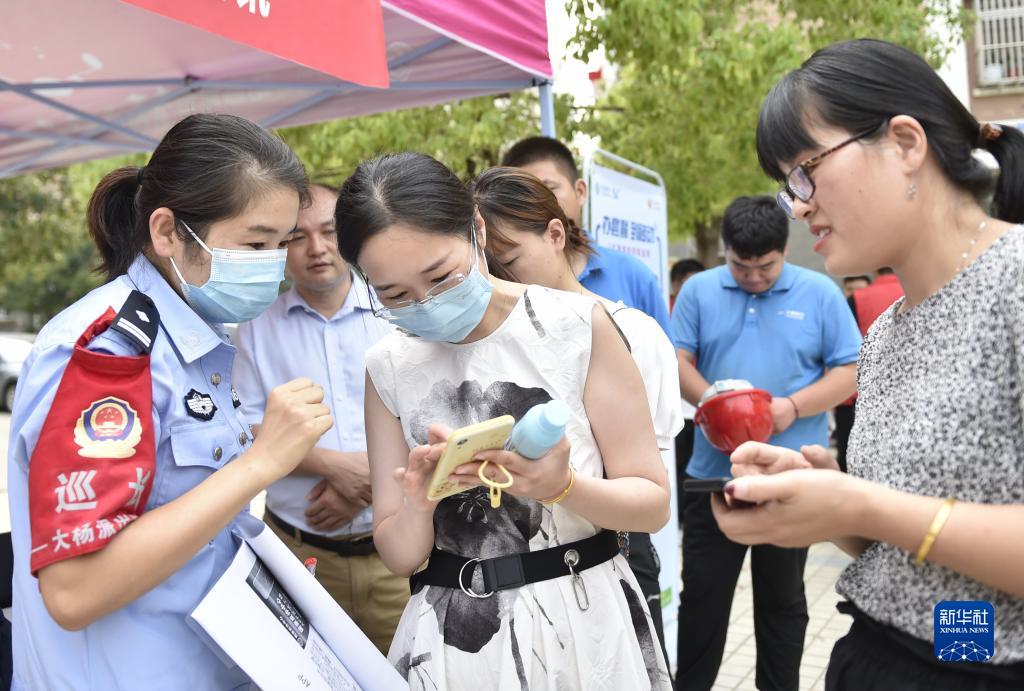 9月9日,在安徽省合肥市廬陽區大楊鎮舉辦的2022年國家網絡安全宣傳周網絡安全進社區活動上,民警為居民介紹防詐騙知識。新華社發(葛傳紅 攝)