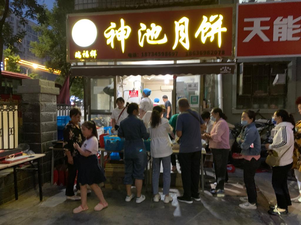 9日晚上,前來排隊的顧客購買神池月餅。新華社記者 魏飚 攝
