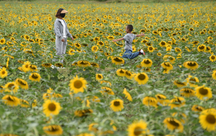 9月11日,游人在云南省麗江市古城區開南街道的向日葵花海里游玩。新華社發(趙慶祖攝)