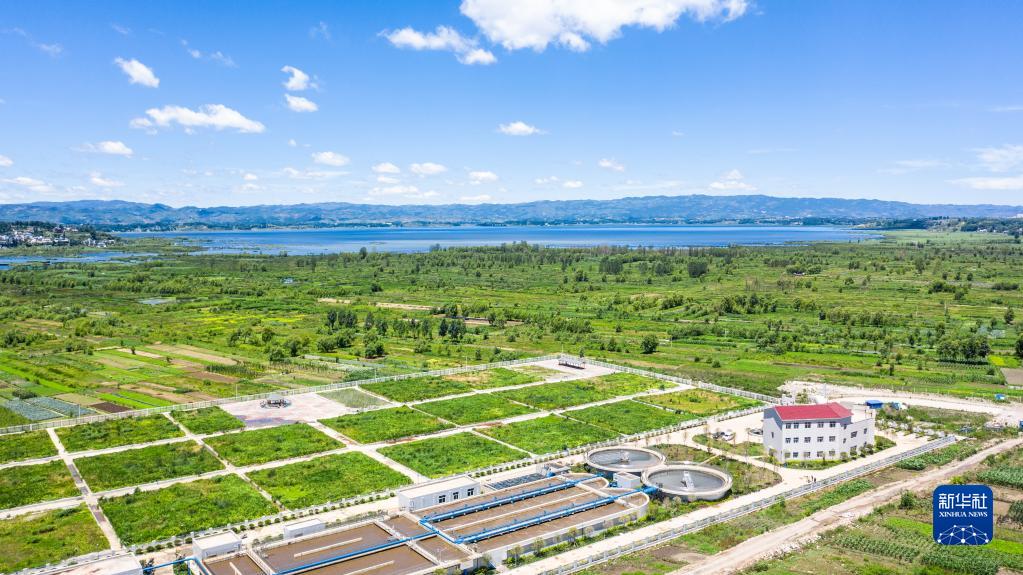 這是貴州草海國家級自然保護區的萬噸生活污水處理廠(2019年6月20日攝,無人機照片)。新華社記者 陶亮 攝