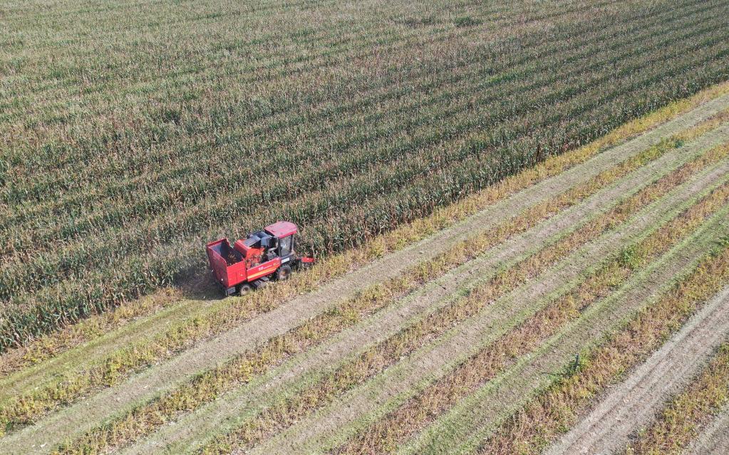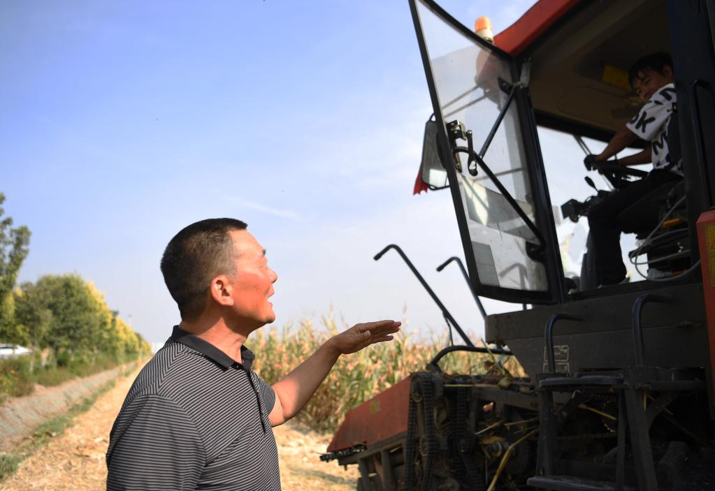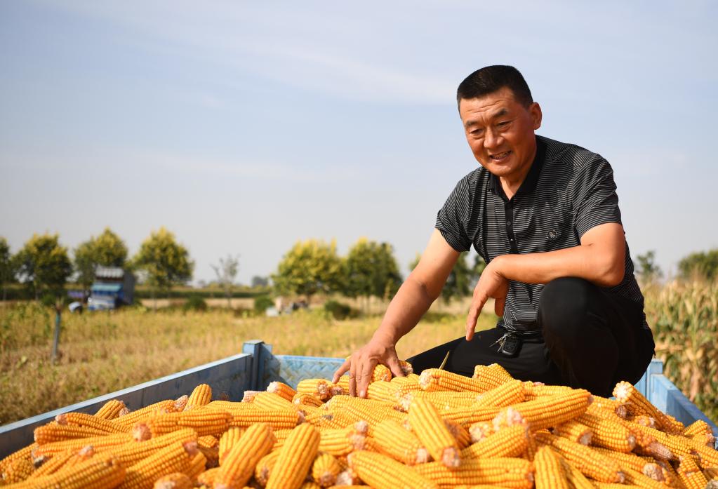 “這是打碎的玉米秸稈的味道,城里可聞不到?!狈N糧大戶、商水縣楓未種植養殖農民專業合作社的負責人邱守先笑著說。瘦高的他,臉上曬得黑里透紅,正在地頭看玉米收割機卸貨,金黃色的玉米棒滾落著裝滿了一輛小四輪拖拉機。