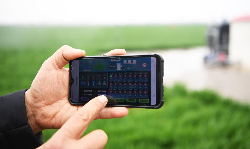 3月22日,邱守先在用手機操控水肥一體機對農田進行灌溉。新華社記者張浩然 攝