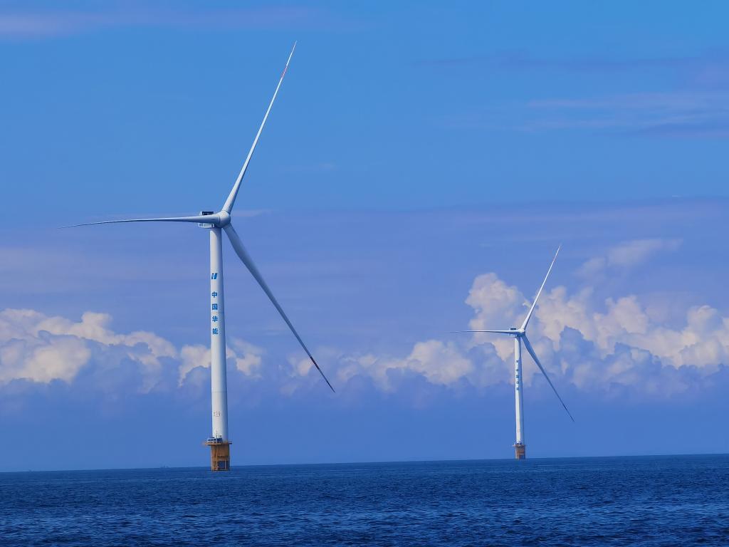 這是2021年7月19日拍攝的華能(莊河)風力發電有限責任公司建設的海上風電場址。(新華社發)