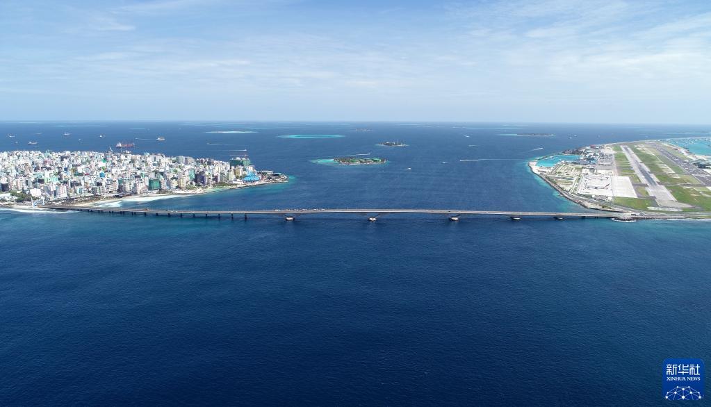 這是馬爾代夫連接首都馬累和機場島的中馬友誼大橋(2019年8月30日攝,無人機照片)。新華社發(王明亮攝)