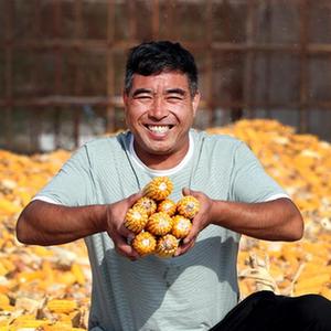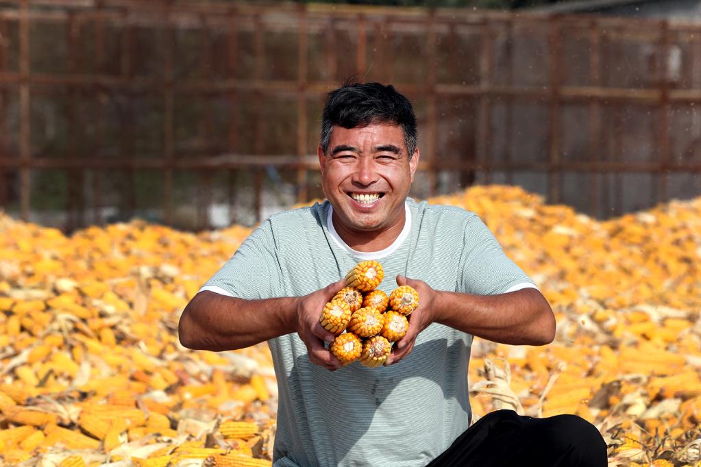 9月22日,在河南焦作博愛縣磨頭鎮崔莊村,“70后”崔衛民展示今年豐收的玉米。新華社發(程全攝)