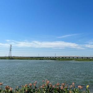 一列高鐵在十八聯圩濕地中穿行。 新華社記者劉美子 攝