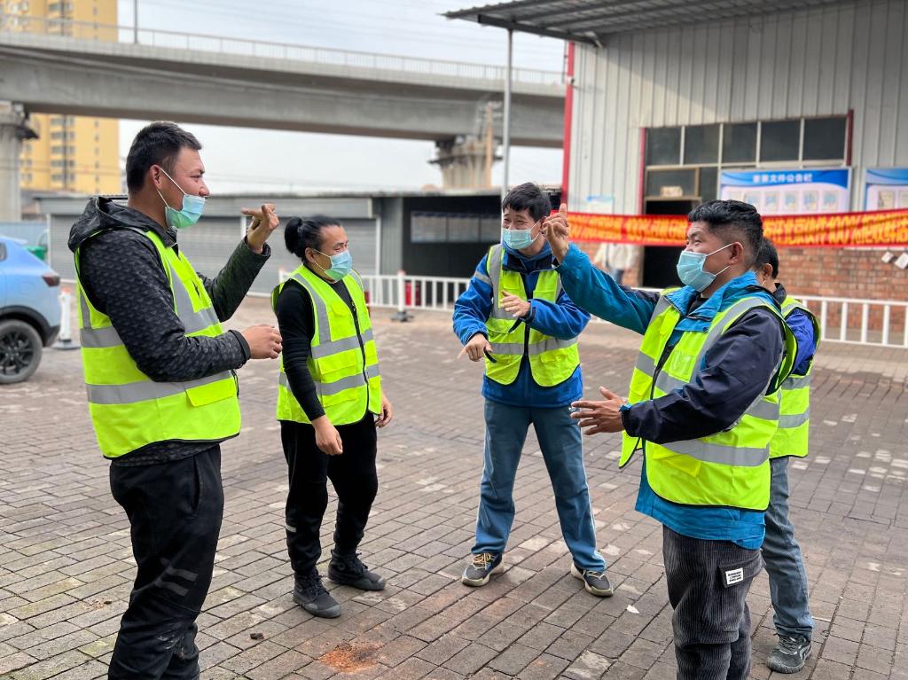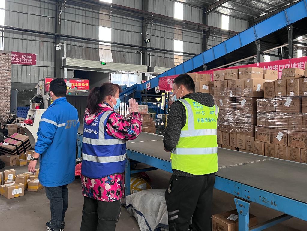 和其他快遞網點不同,在忙碌的身影中,有幾個人穿著亮眼的熒光綠馬甲,在卡車車廂內外專注地搬運快件,不時比劃幾個手勢。