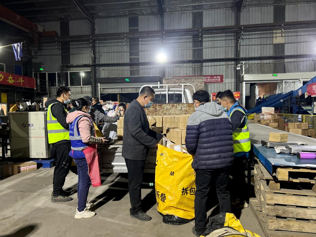 晚上7點,快遞園區的員工們還在忙碌。新華社記者 馬曉潔 攝
