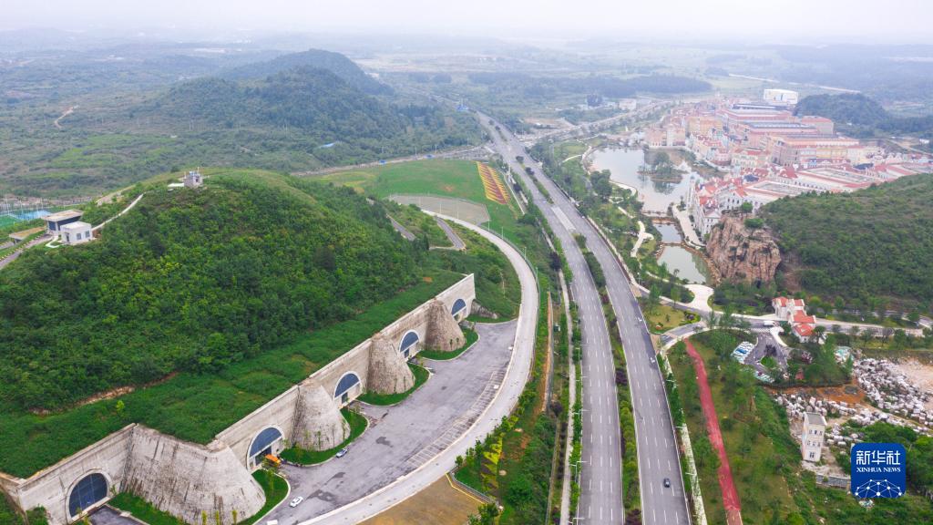 貴安新區華為云數據中心(以道路為界右側)和騰訊貴安七星數據中心(左側)(2022年5月24日攝,無人機照片)。新華社記者 歐東衢 攝