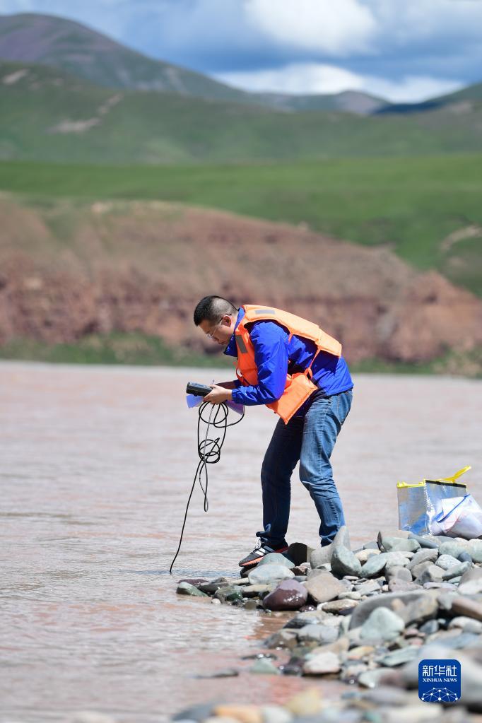 長江科學院流域水環境研究所副所長趙良元在長江上游通天河流域觀測水文(2021年7月24日攝)。 新華社記者 張龍 攝