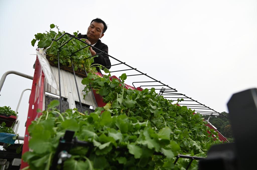 新育苗技術、農機裝備的應用也在助力長江流域油菜擴種。11月初,在江西省宜春市袁州區西村鎮山背村智慧農業育秧工廠內,秧盤上綠油油的油菜苗長勢喜人。種植大戶付大富開著農機,一上午就完成了10多畝油菜苗的栽插?!坝辛擞砉S,種植效率大大提高。明年早稻育秧也不耽誤,土地利用起來了,肥力也更好了!”付大富說。