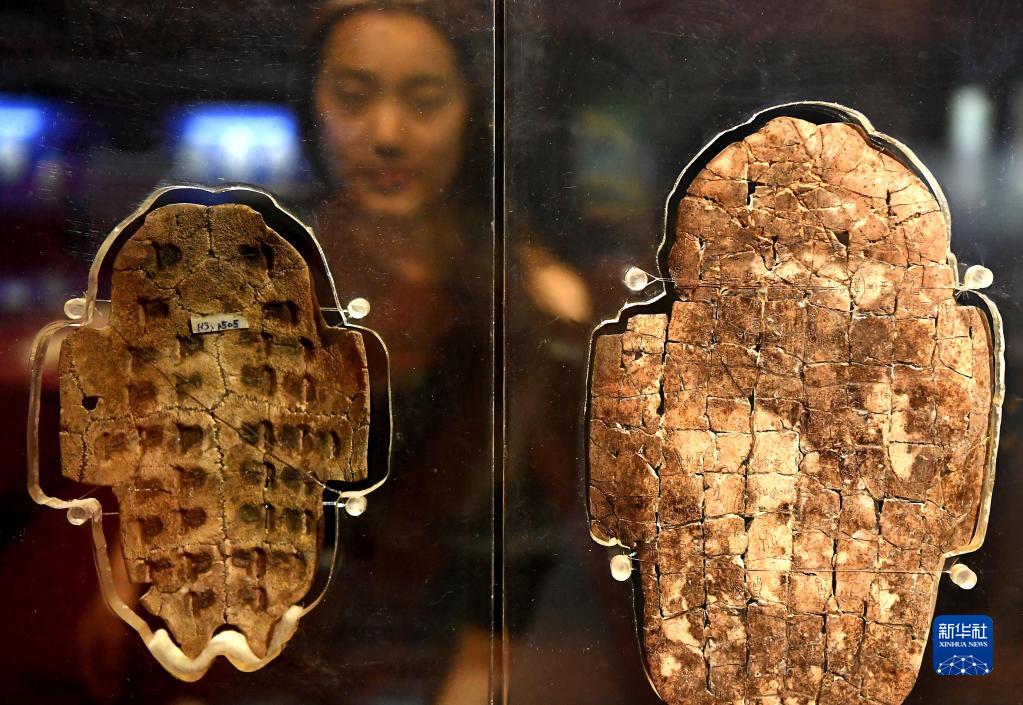 游客在河南安陽殷墟博物館觀看展出的卜甲(2018年10月12日攝)。 新華社記者 李安 攝