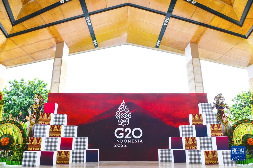 這是2022年11月11日在印度尼西亞巴厘島拍攝的二十國集團領導人第十七次峰會會場外的標識。新華社記者 徐欽 攝