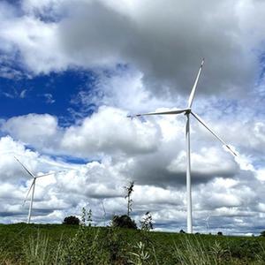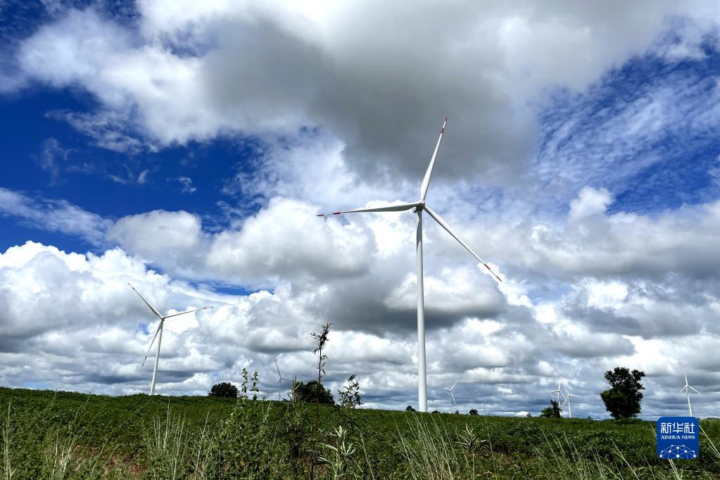 這是2022年10月4日在泰國猜也蓬府拍攝的由中國金風科技提供的風力發電機。新華社記者 宋宇 攝