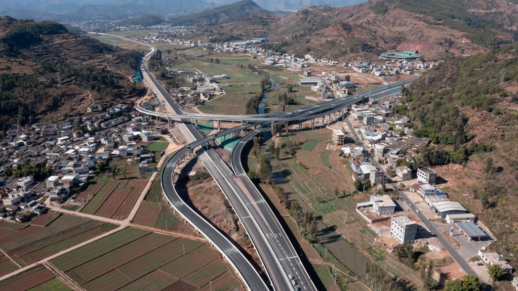 這是11月25日拍攝的沿江高速即將通車的會東至會理段局部(無人機照片)。新華社記者 胥冰潔 攝
