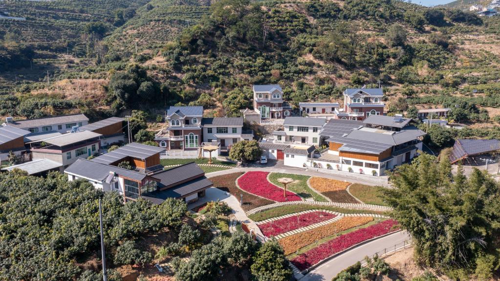 這是11月27日拍攝的攀枝花市仁和區混撒拉村,當地在屋頂等閑置空間安裝太陽能光伏發電板(無人機照片)。新華社記者 胥冰潔 攝