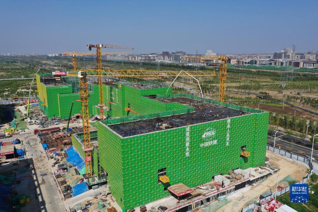 中科院雄安創新研究院科技園項目建設現場(2022年9月1日攝,無人機照片)。 新華社記者 朱旭東 攝